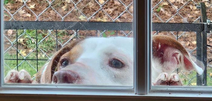 Foster dog Homer decided to leave his foster to go along with some walkers headed to the gym. He just hung out and visited until his foster mom got there to collect him. Homer has been with our rescue for three years and has not found his forever home yet. He is such a good boy. His biggest draw back is if he is left outside unattended for too long he seems to know how to open the gate to go visiting. Other than that he is such a great boy. Homer is such a good boy. Does fine with other dogs that we have introduced him to, neutered, heartworm negative. Loves attention but is a little strong on a leash (which would probably be less with more regular exercise). Homer would do best with an active family and a fenced yard.See a video of Homer by clicking here