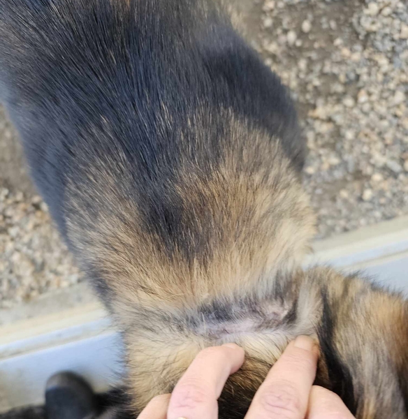 Notes: Max Bandit is the neighborhood dog that was out wandering for a couple of weeks and never reclaimed from Animal Control. It looks like he may have had a rough spell at some point in his life. You can see he had a collar that had embedded at some point. Just glad it was removed before it got completely embedded. He still has a few very small scab areas.